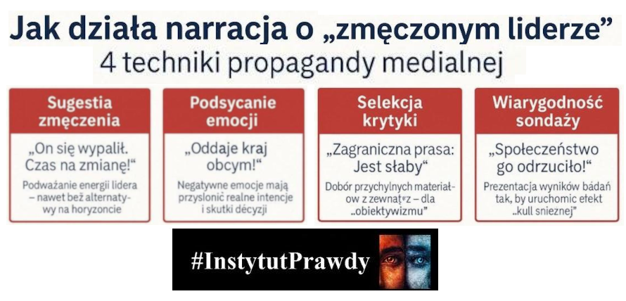 Pseudo uzasadnienie: przywoływanie fragmentów z „niemieckiego Spiegla" czy sondaży bez kontekstu, by wzmocnić wrażenie „obiektywnej krytyki".
