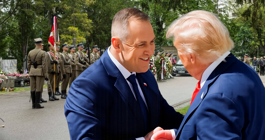 I teraz minister rezydenta, pan Przydacz, kuli ogon, kurczy mu się to poczucie honoru do kupki piachu i pisze o tym, że Trump docenia wojsko polskie, a: